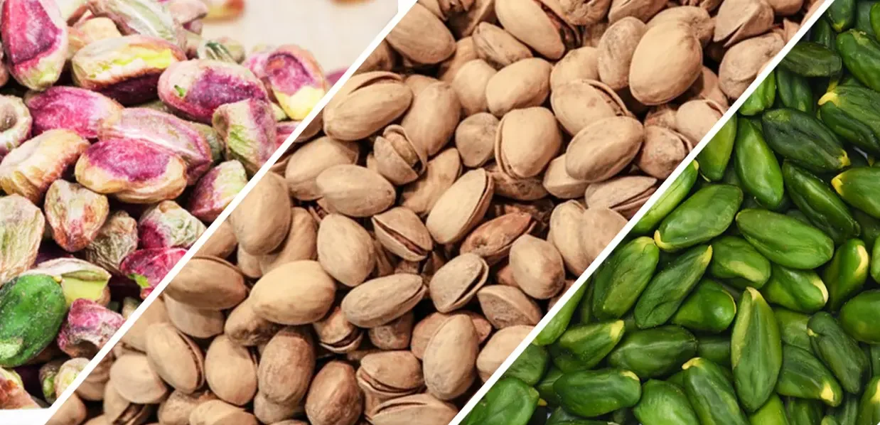 سورت پسته: گریدبندی از سبز تیره تا طلایی مغز دو پوست